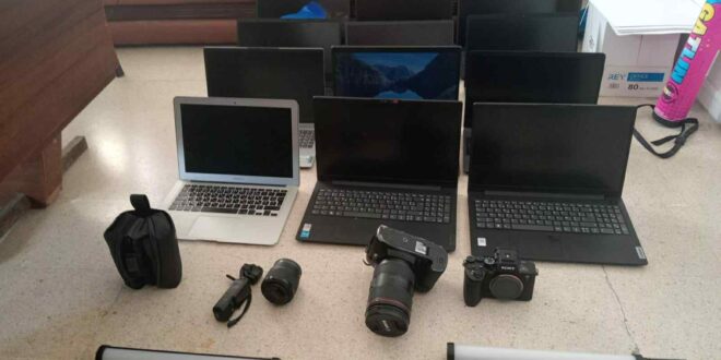 وبايلاء الموضوع الأهمية اللازمة و الاطلاع على كل تسجيلات كاميرات المراقبة التابعة للشركات المتضررة و المجاورة وبعد التحري والتنسيق مع محلات ناشطة في تصليح و شراء الحواسيب ،وردت لأعوان الفرقة صباح الأحد معلومات مفادها إعتزام نفر بيع عدد 12 حاسوب محمول بالإضافة إلى كاميرات تصوير.. فتم نصب كمين محكم أمكن من خلاله إلقاء القبض عليه و حجز المسروق في وقت قياسي.