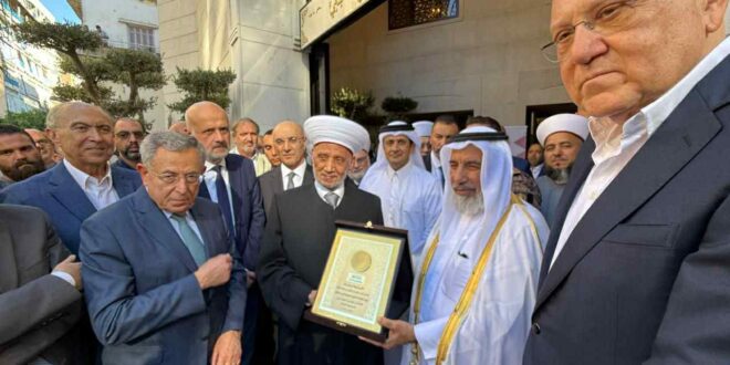 وتسلم المفتي دريان من الوزير القطري درع وزارة الاوقاف القطرية ومصحفا كبيرا.