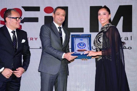 كرم مهرجان VS-FILM للأفلام القصيرة جدا في حفل الافتتاح كل من النجمة هالة صدقى حنان مطاوع وأشرف عبد الباقي ومنتج أفلام الرسوم المتحركة عباس بن العباس.