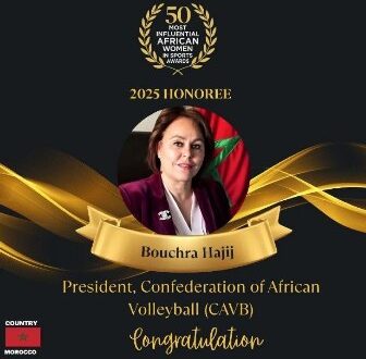 حققت بشرى حجيج، رئيسة الاتحاد الإفريقي للكرة الطائرة ونائبة رئيس الاتحاد الدولي للكرة الطائرة والاتحاد العربي للكرة الطائرة، إنجازًا بارزًا بانضمامها إلى قائمة «50 من أكثر النساء الإفريقيات تأثيرًا في الرياضة لعام 2025»، لتؤكد مكانتها كواحدة من أبرز القيادات النسائية الرياضية على مستوى القارة والعالم.