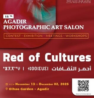 تتهيأ مدينة أكادير لاحتضان واحد من أبرز المواعيد الفنية خلال سنة 2025، وذلك مع انطلاق المعرض الدولي للتصوير الفوتوغرافي الذي ينظمه نادي أكادير للتصوير الفوتوغرافي امتدادًا لفعاليات الصالون الدولي الحادي عشر للفن الفوتوغرافي. وسيستقبل فضاء قاعة المعارض بحديقة أولهاو، من 13 نونبر إلى 02 دجنبر 2025، مجموعة من الأعمال المختارة التي وصلت إلى المرحلة النهائية من المسابقة الدولية «أحمر الثقافات»، وهي مسابقة استقطبت طيفًا واسعًا من المصورين عبر العالم، وفتحت أمامهم مجالًا للتعبير البصري عن العلاقة بين اللون الأحمر والتجارب الثقافية الإنسانية.