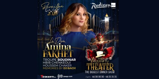 بمناسبة الاحتفال برأس السنة، يقدّم المايسترو رياض بودينار وفرقته سهرة فرجوية استثنائية تمزج بين الموسيقى والعرض الفني والأداءات الإبداعية، وذلك مساء 31 ديسمبر 2025 بفندق راديسون بلو تونس.