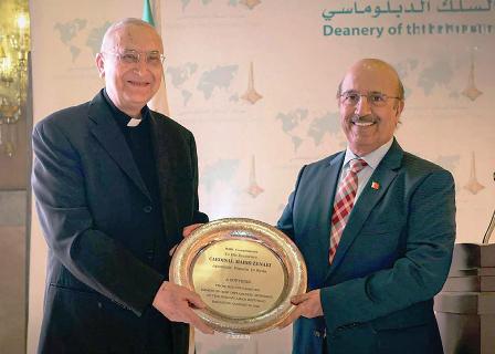أقام السفير وحيد مبارك سيار، عميد السلك الدبلوماسي في دمشق، سفير مملكة البحرين لدى سورية ، حفل توديع السعادة السفير البابوي الكاردينال ماريو زیناري عميد السلك الدبلوماسي السابق وذلك بمناسبة انتهاء فترة عمله في سورية.
