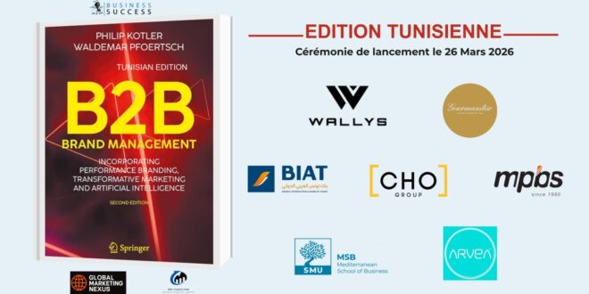 تونس ستحظى بنسختها الخاصة من الكتاب المرجع في التسويق الحديث لكل من “فيليب كوتلر” و”فالدمار بفورتش” (Philip Kotler et Waldemar Pfoertsch) بعنوان «B2B BRAND MANAGEMENT» (“إدارة العلامة التجارية في قطاع الأعمال”)، وبذلك تُتاح للمؤسسات التونسية فرصة ثمينة لتدوين نجاحاتها في هذا المُؤلَّف ذي الصّيت العالمي، مُؤلَّف يفتح آفاقاً جديدة نحو عالم فن إدارة العلامات التجارية والشراكة بين المؤسسات” (B2B) .