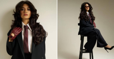 وظهرت بسنت مرتدية بدلة سوداء أوفر سايز نسّقتها مع قميص أبيض وكرافتة باللون النبيتي، وأضافت قفازات جلدية بنفس اللون، ما منح الإطلالة طابعًا قويًا يمزج بين الأناقة الكلاسيكية والستايل العصري الجريء، لتؤكد من جديد حرصها على تقديم اختيارات غير تقليدية.