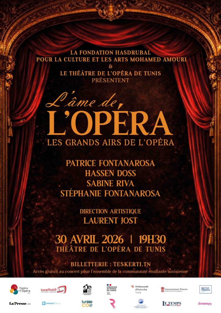 ، تقدّم مؤسسة صدربعل للثقافة والفنون محمد العموري، بالشراكة مع مسرح أوبرا تونس، عرضًا مميزًا بعنوان «روح الأوبرا – أشهر مقطوعات الأوبرا»، وذلك على يوم الخميس 30 أفريل على خشبة مسرح أوبرا تونس، في حفل استثنائي صُمّم كعودة إلى جوهر الفن الأوبرالي.